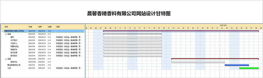 黑眼睛廣告為晨馨香精香料有限公司官網(wǎng)改版設(shè)計(jì)繪制的甘特圖