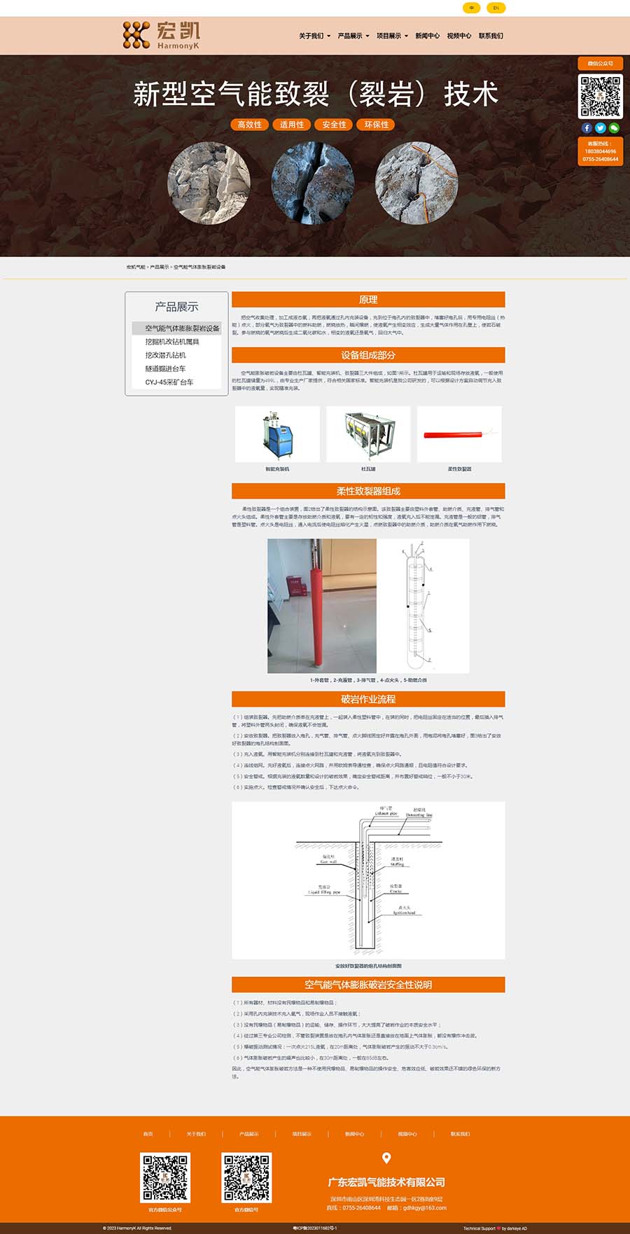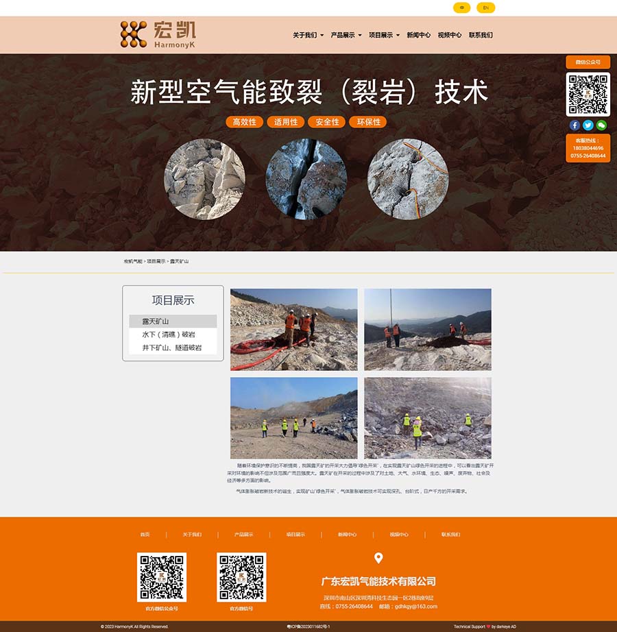 廣東宏凱氣能技術有限公司是國家高新技術企業(yè)深圳宏業(yè)基巖土科技股份有限公司子公司,坐落在深圳市南山區(qū)粵海街道高新區(qū)社區(qū)沙河西路1809號深圳灣科技生態(tài)園2棟B902,注冊資金1000萬人民幣。公司專注于氣能相變裂巖技術與相關設備的創(chuàng)新研發(fā),承攬露天礦山、基坑開挖、城市市政、道路擴建、地鐵隧道掘進及水下礁石清理等靜態(tài)氣體膨脹破巖工程。公司開發(fā)的新型氣能破巖技術擁有核心專利技術40余項,參與起草制定行業(yè)標準,企業(yè)標準,其技術處于國內外領先水平,并獲得中國爆破行業(yè)協(xié)會科技進步二等獎。